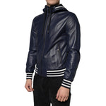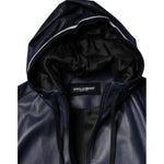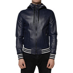 Dolce & Gabbana Blue Leather Full Zip Hooded Bomber Jacket