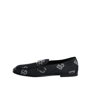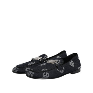 Dolce & Gabbana Blue Logo Cotton Loafers Formal Dress Shoes