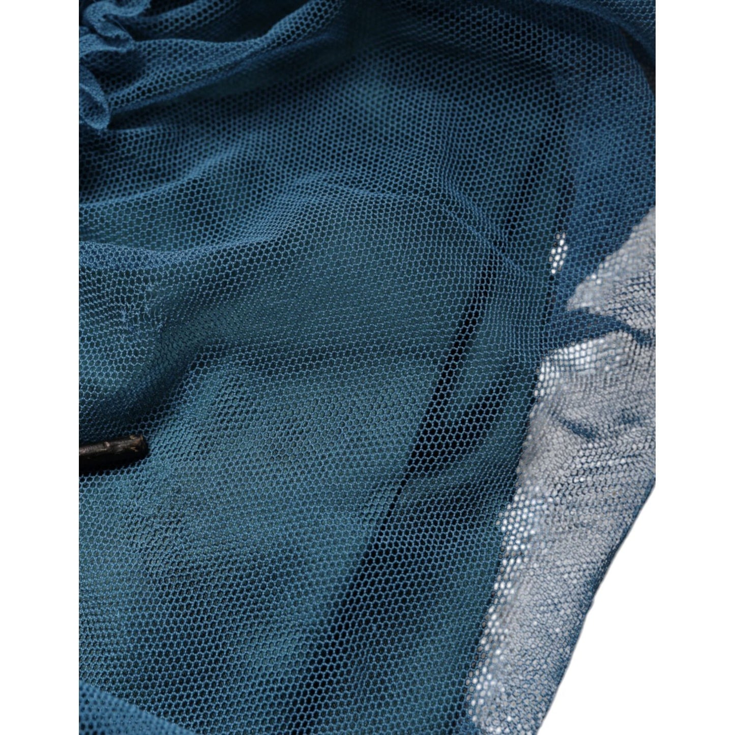 Dolce & Gabbana Blue Mesh Trim Ruched Tulle Sheath Dress