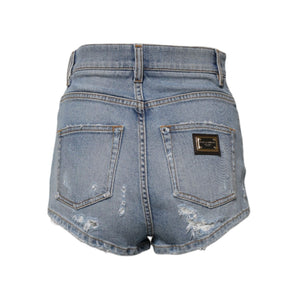 Dolce & Gabbana Blue Tattered Denim Cotton Hot Pants Shorts
