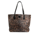 • Dolce & Gabbana Brown Black Calfskin Leopard Print Shoulder Tote Bag