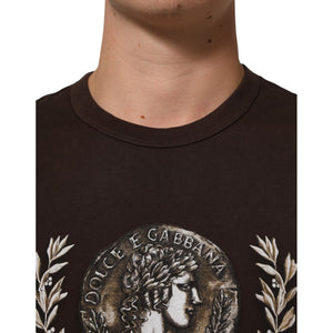 Dolce & Gabbana Brown Coin Laurel Print Men Crew Neck T-shirt with intricate regal coin and laurel design on premium cotton fabric.