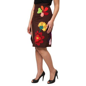 Dolce & Gabbana Brown Floral High Waist Side Slit Skirt