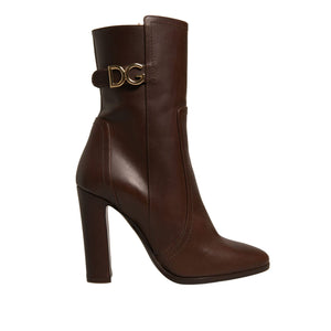 Dolce & Gabbana Brown Leather Heels Mid Calf Boots Shoes