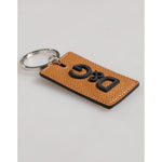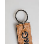Dolce & Gabbana Brown Leather Logo Metal Ring Keychain Holder Men Keyring