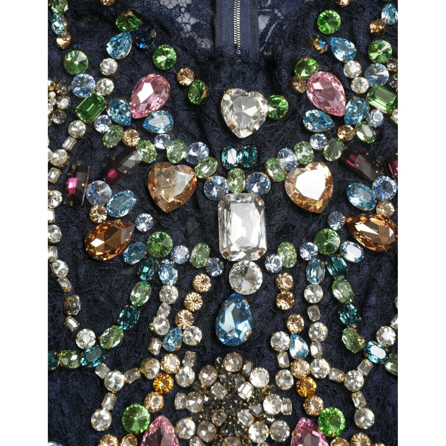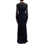 Dolce & Gabbana Blue Crystal Floral Lace Long Gown Dress