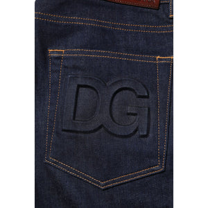 Dolce & Gabbana Dark Blue Cotton Logo Slim Fit Men Denim Jeans
