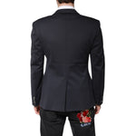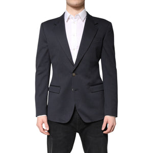 Dolce & Gabbana Dark Blue Cotton Men Jacket Coat Suit Blazer