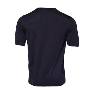 Dolce & Gabbana Dark Blue Silk Crew Neck Short Sleeves T-shirt