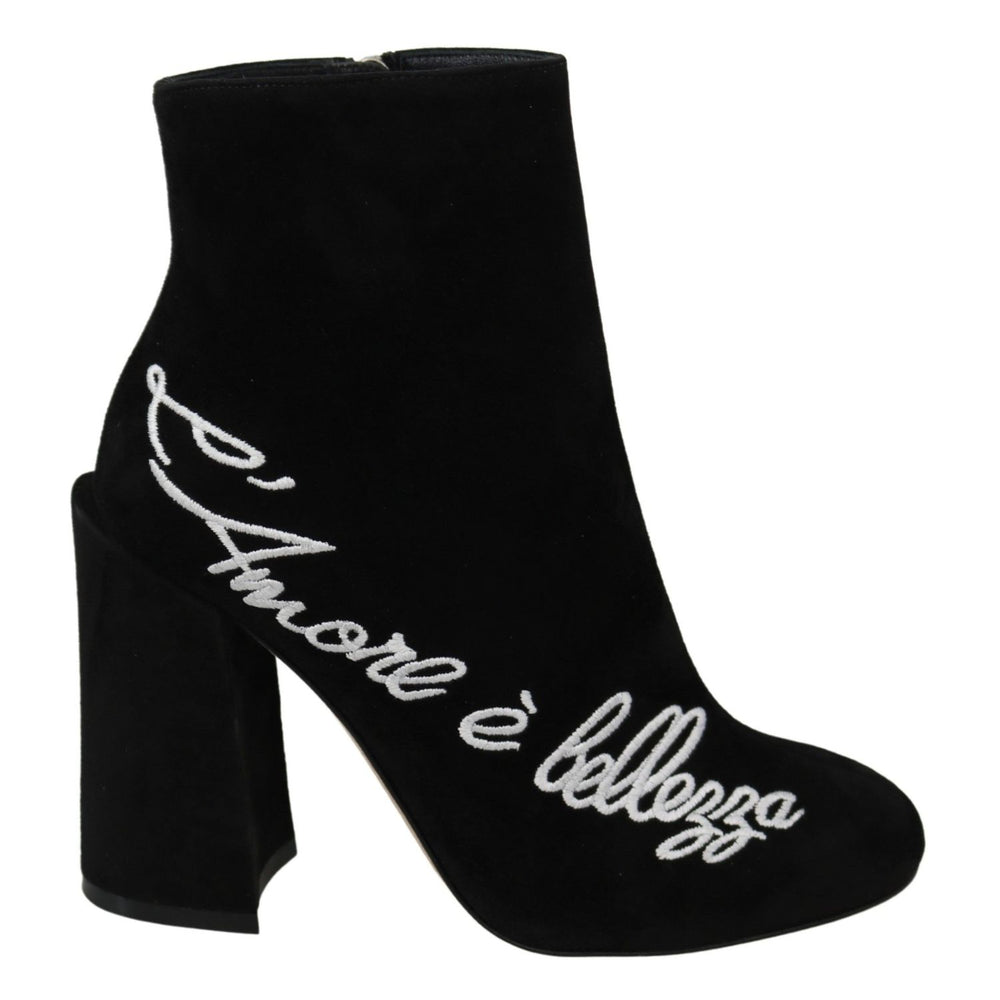 Dolce & Gabbana Black Suede L'Amore E'Bellezza Boots Shoes