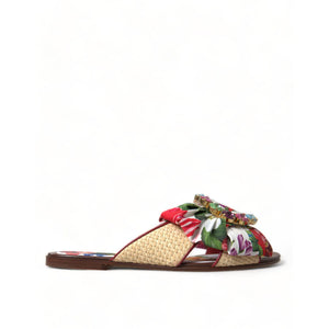 Dolce & Gabbana Multicolor Floral Flats Crystal Sandals Shoes