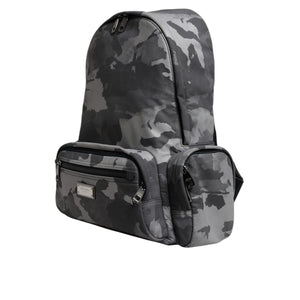 Dolce & Gabbana Gray Cotton Camouflage Logo Plaque Backpack Bag