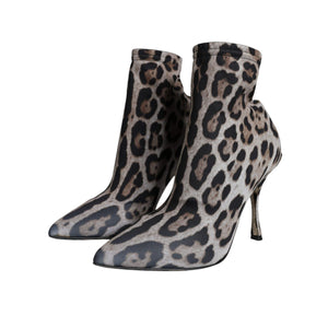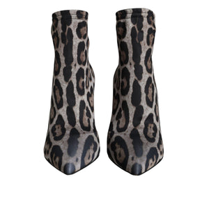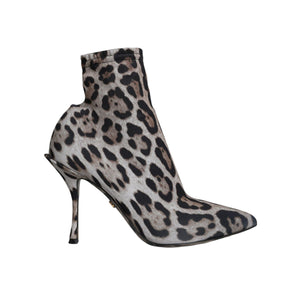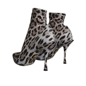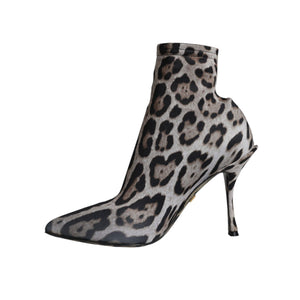 Dolce & Gabbana Gray Leopard Stretch Heels Ankle Boots Shoes