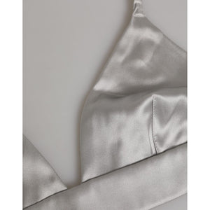 Dolce & Gabbana Gray Silk Satin Triangle Soft Cup Bra Underwear showcasing elegant and sensual Italian design.