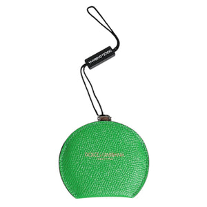 Dolce & Gabbana Green Calfskin Leather Round Logo Hand Mirror Holder