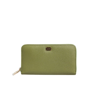 Dolce & Gabbana Green Leather Logo Plaque Zip Around Continenta Wallet