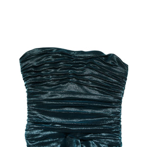 Dolce & Gabbana Green Silk Satin Fitted Strapless Dress