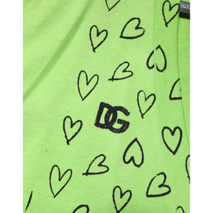 Dolce & Gabbana Green V-Neck DG Logo Heart Print T-shirt