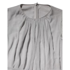 Dolce & Gabbana Grey Pleated Maxi Long Sleeve Silk Blend Gown Dress