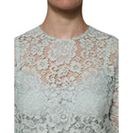 Dolce & Gabbana Mint Green Floral Lace Cotton Blouse Top