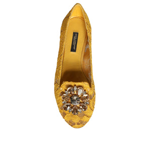 Dolce & Gabbana Mustard Lace Crystal Ballet Flats Loafer Shoes