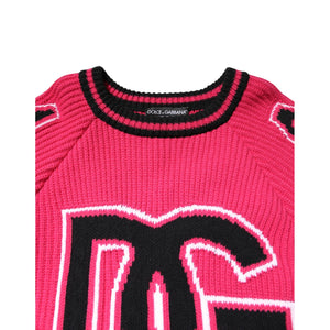 Dolce & Gabbana Pink Cotton Logo Print Knit Pullover Sweater