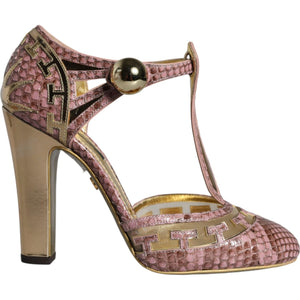 Dolce & Gabbana Pink Gold Leather Pumps T-strap Sandals Shoes