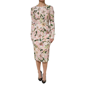 Dolce & Gabbana Pink Lily Viscose Sheath Stretch Midi Dress