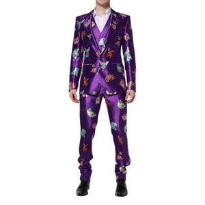 Dolce & Gabbana Purple Silk Animal Print 3 Piece Suit