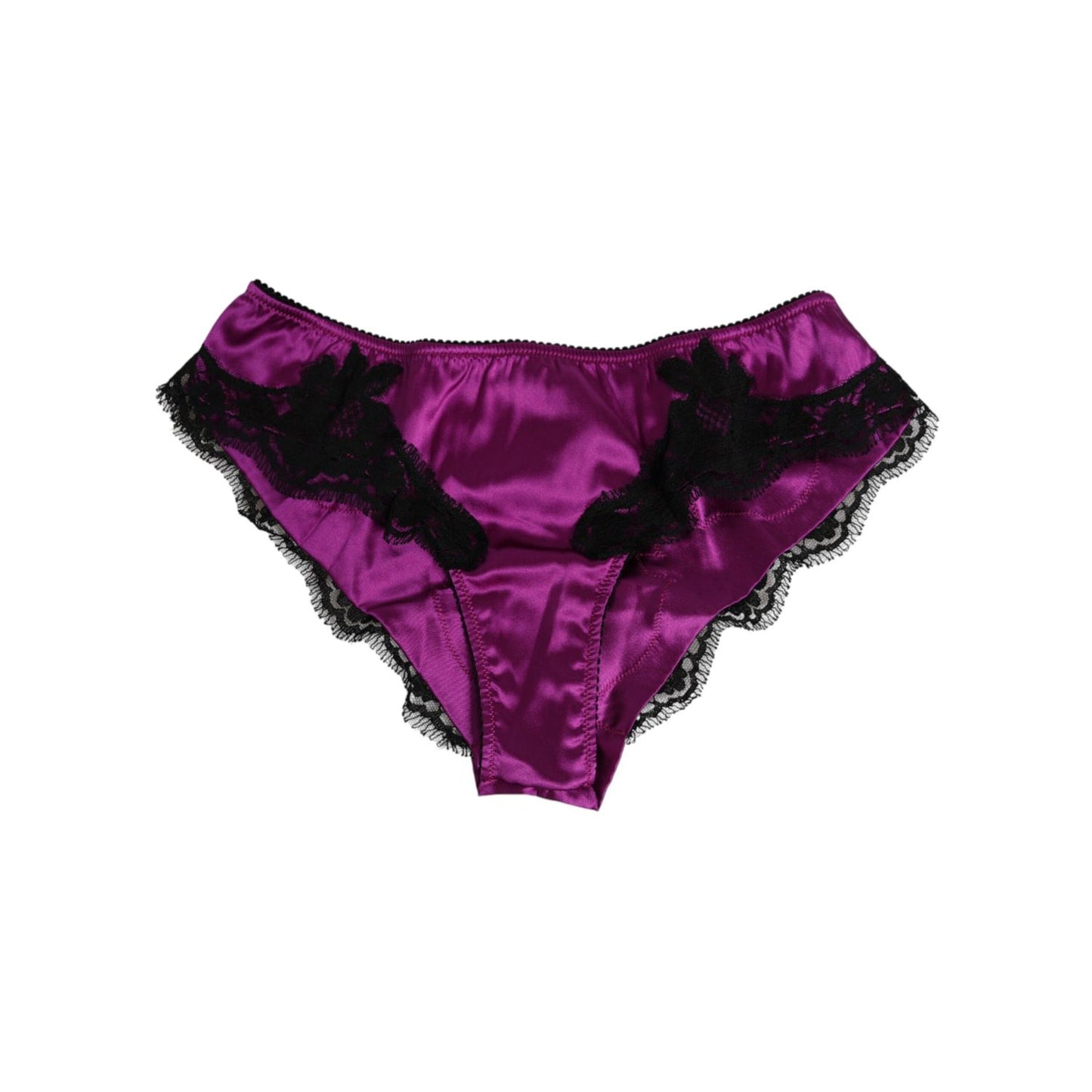 Dolce & Gabbana Purple Silk Satin Floral Lace Panty Brief Underwear