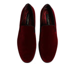 Dolce & Gabbana Red Cotton Velvet Slip On Loafers Formal Shoes