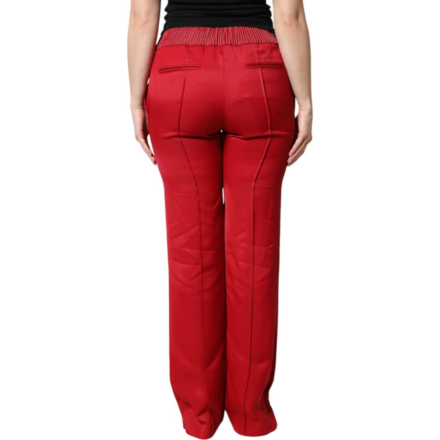 Dolce & Gabbana Red Viscose Straight Fit Pants