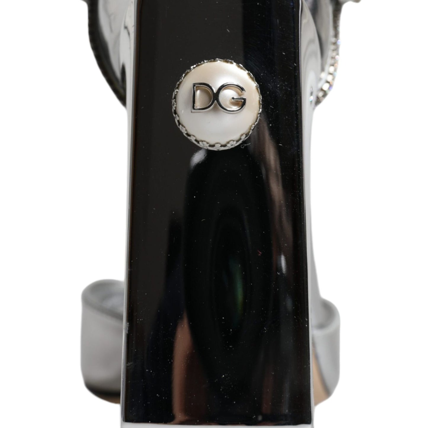 • Dolce & Gabbana Silver Leather T-strap Heels Sandals Shoes