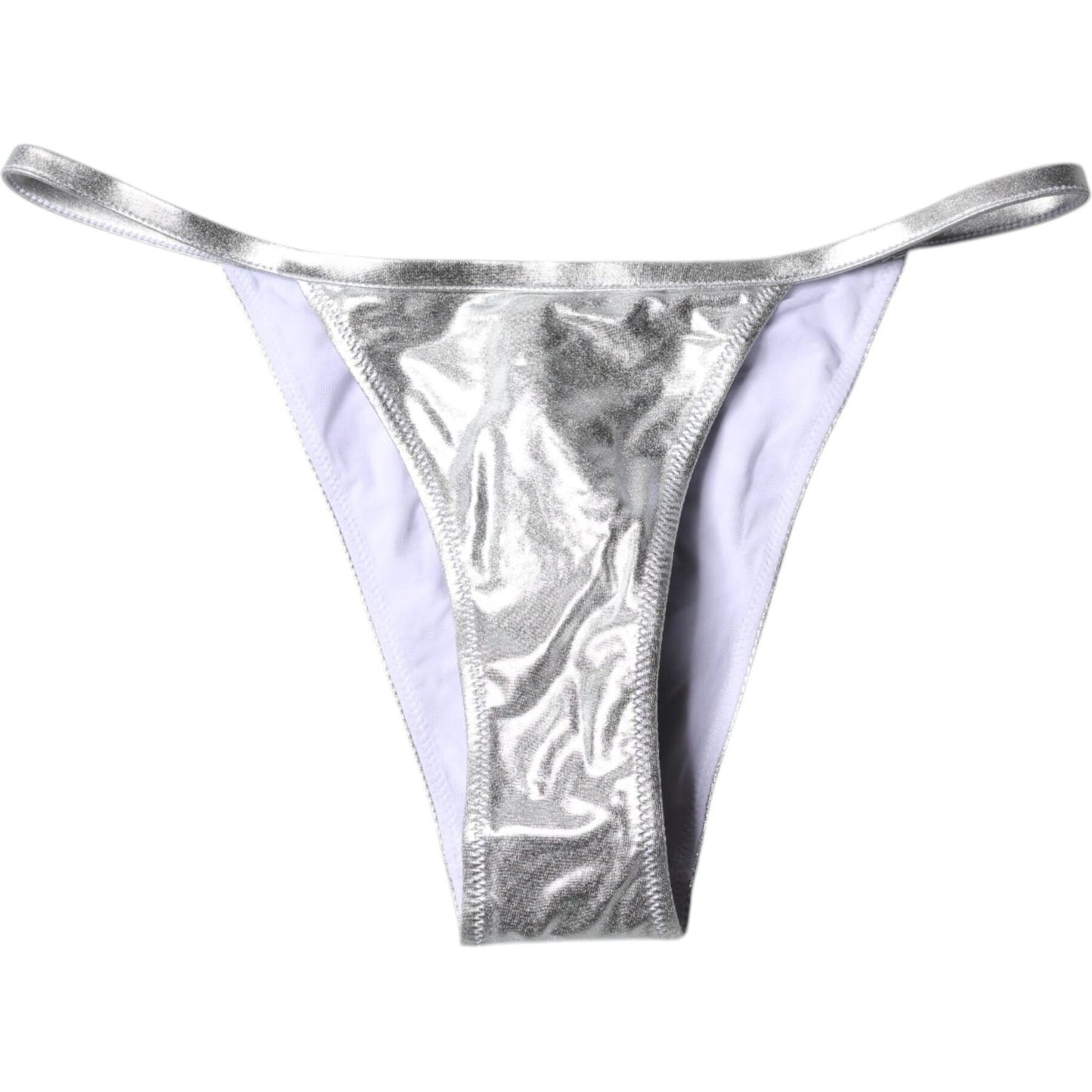 Dolce & Gabbana Silver Polyester Beachwear Bikini Bottom Swimwear