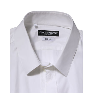 • Dolce & Gabbana White Cotton GOLD Long Sleeves Formal Shirt