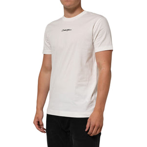 Dolce & Gabbana White Cotton Logo Print Crew Neck Men T-shirt