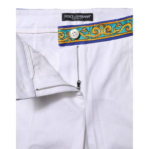 Dolce & Gabbana White Cotton Mid Waist Tapered Trouser Pants