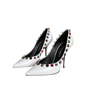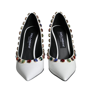 Dolce & Gabbana White Crystal Leather High Heels Pumps Shoes