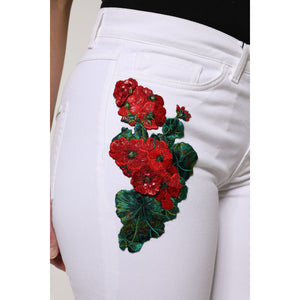 Dolce & Gabbana White Floral Sequined GIRLY Denim Jeans