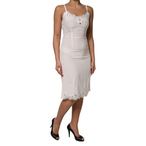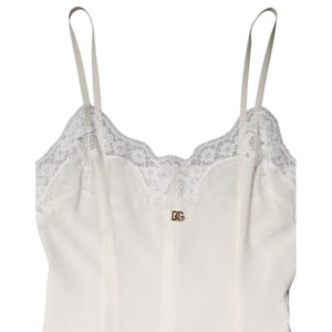 Dolce & Gabbana White Lace Gold DG Logo Silk Dress Sleepwear