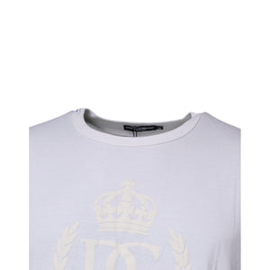 • Dolce & Gabbana White Logo Embossed Cotton Crewneck T-shirt
