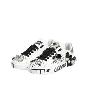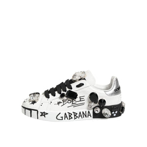 Dolce & Gabbana White Portofino Crystal Sneakers Shoes
