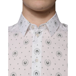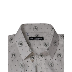 Dolce & Gabbana White Printed Cotton Slim Fit Men Dress Shirt
