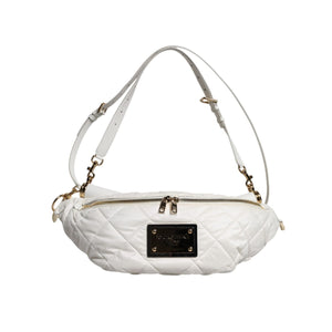 Dolce & Gabbana White Quilted Logo Plaque Belt Waist Fanny Pack Bag