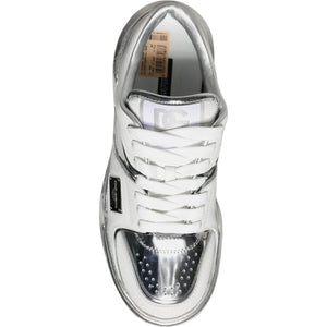 Dolce & Gabbana White Silver Leather Low Top Sneakers Shoes