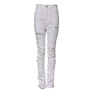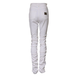Dolce & Gabbana White Tattered Cotton High Waist Denim Jeans