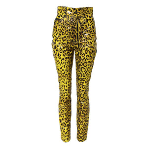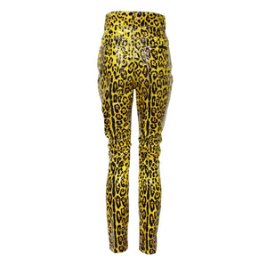 Dolce & Gabbana Yellow Leopard High Waist Slim Pants