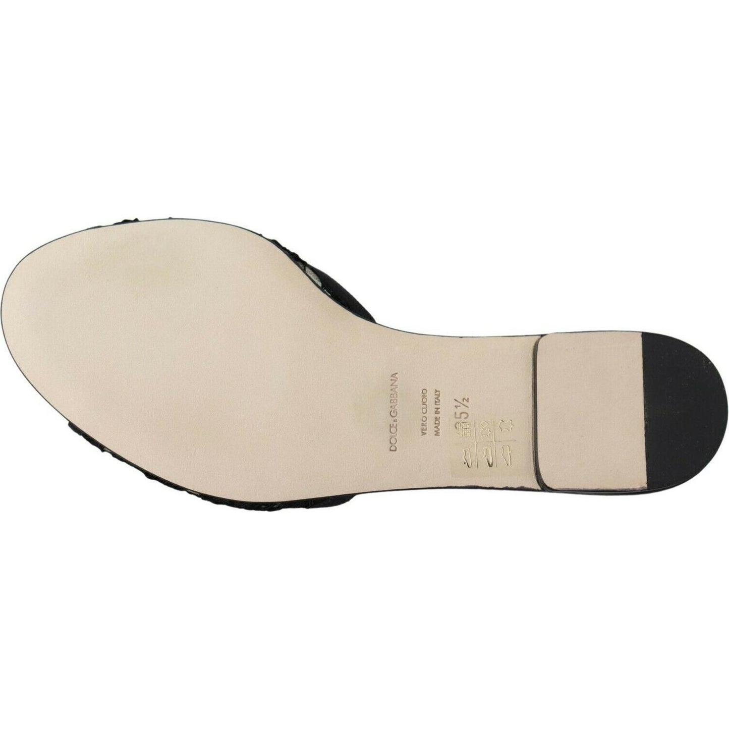 Dolce & Gabbana Black Taormina Lace Slides Crystals Flats Shoes