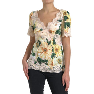 Dolce & Gabbana Multicolor Floral Lace V Neck Blouse