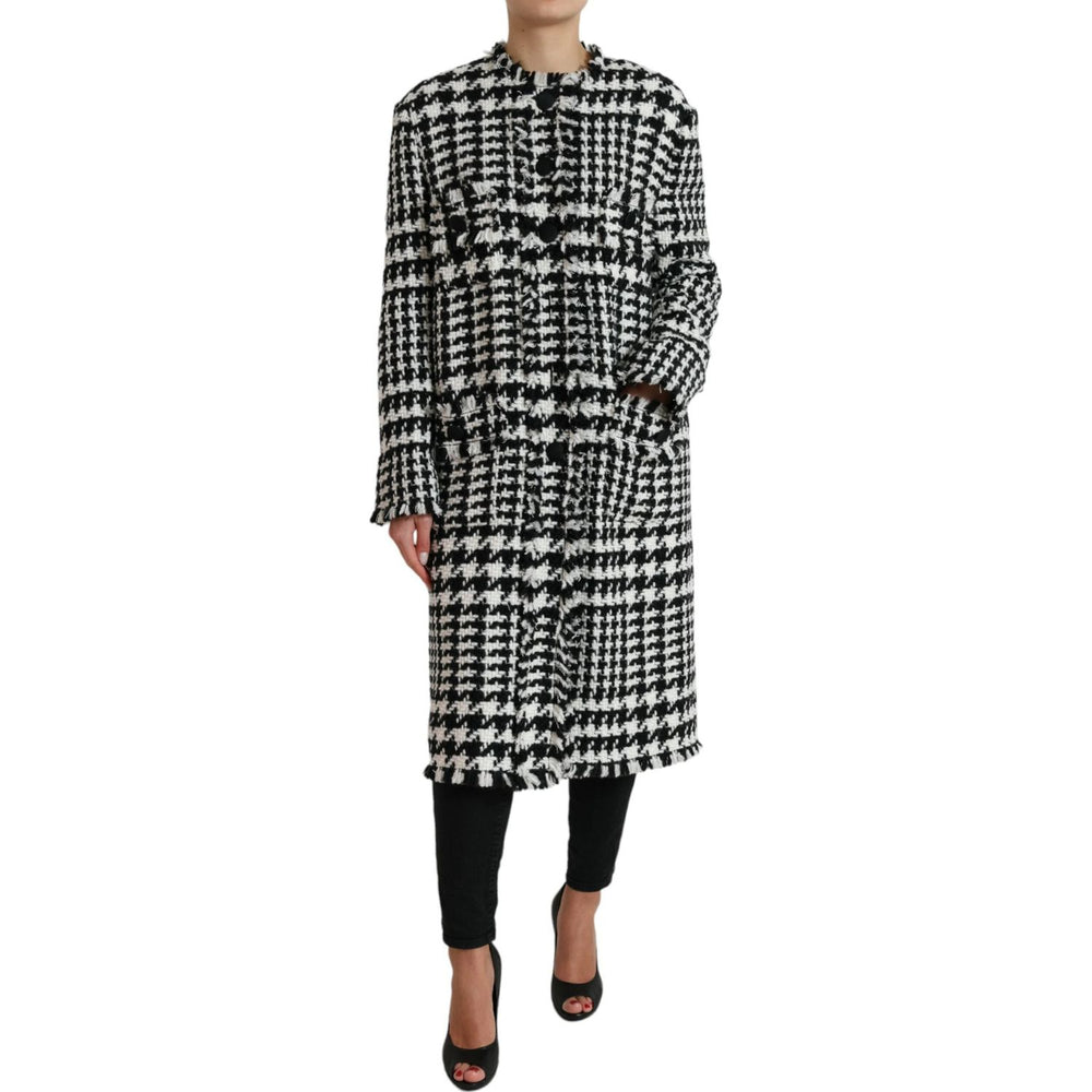 Dolce & Gabbana Black White Houndstooth Trench Coat Jacket